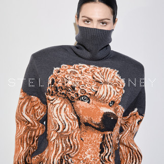 Fronting the capsule is Amelia Gray, whose presence feels deliberate rather than decorative. Known for her sharp, slightly feral energy and internet-era cool, she becomes the perfect conduit between Koons’ polished provocation and McCartney’s fashion lineage. Shot in an organic cotton t-shirt first seen on Stella’s Winter 2025 runway, Amelia embodies the tension the collection thrives on: classic meets chaotic, luxury meets meme.